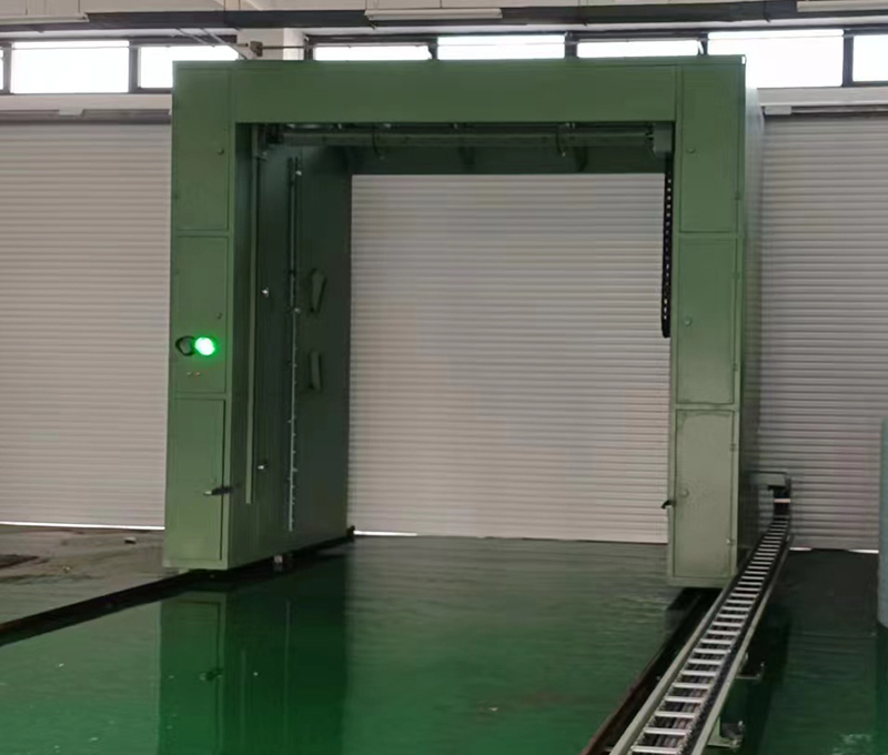 3、360度高壓水刀清洗,進口水泵配合大功率電機,直驅(qū)鏈接方式,保證沖洗壓力,勻速,勻壓,勻距清洗車身,德國倍加福超聲波檢測,內(nèi)嵌式吊梁行走方式配合私服電機,行走穩(wěn)定,行走速度可調(diào)節(jié);