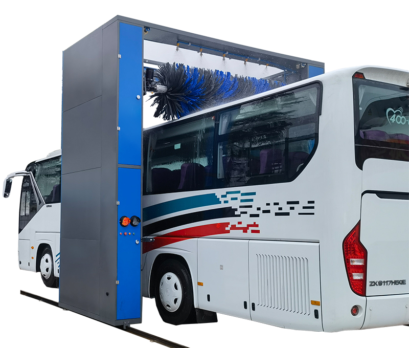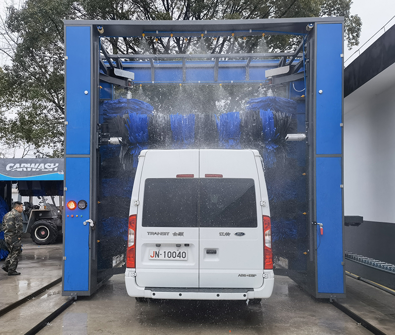 可以根據(jù)需要,選擇單程清洗或往復(fù)清洗功能,并可選擇清洗過程中是否使用頂刷清洗車頭、車尾或車頂。清洗后的水經(jīng)過處理后循環(huán)使用。具有自動(dòng)與手動(dòng)控制功能并能選擇是否使用清洗劑清洗,同時(shí)具有多項(xiàng)安全保護(hù)功能。(雙刷結(jié)構(gòu),頂部由高壓水沖洗)